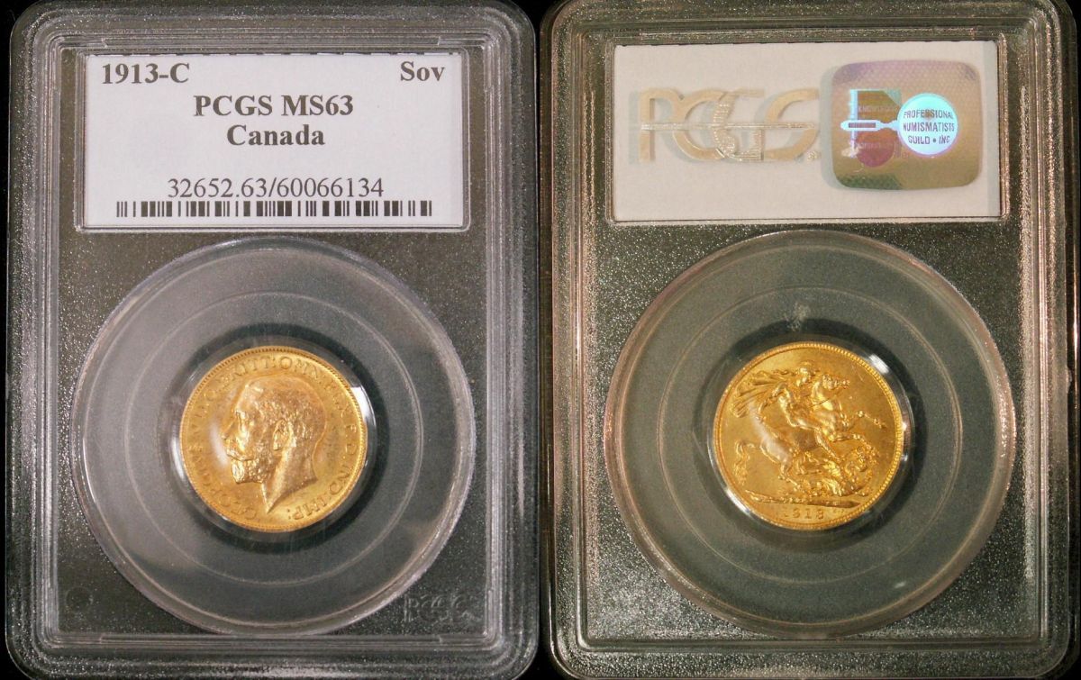 1913c Sovereign PCGS MS63, A nice example with lots of lustr