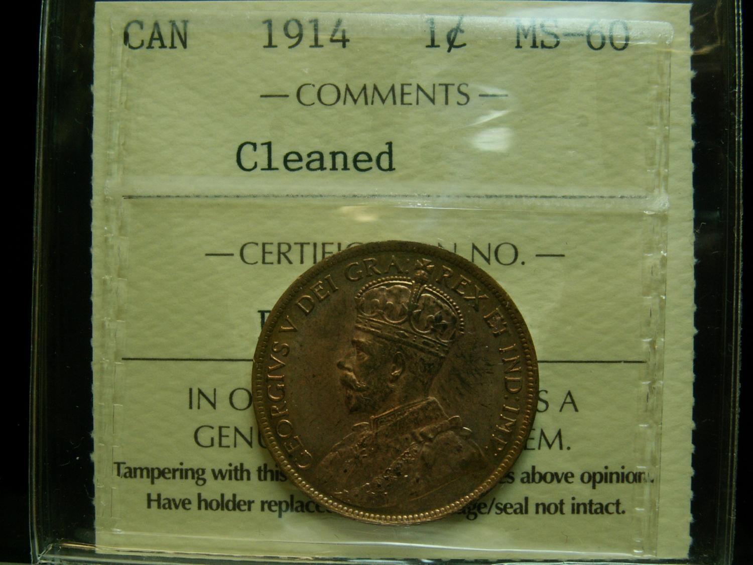 1914 1¢ ICCS MS60 Cleaned