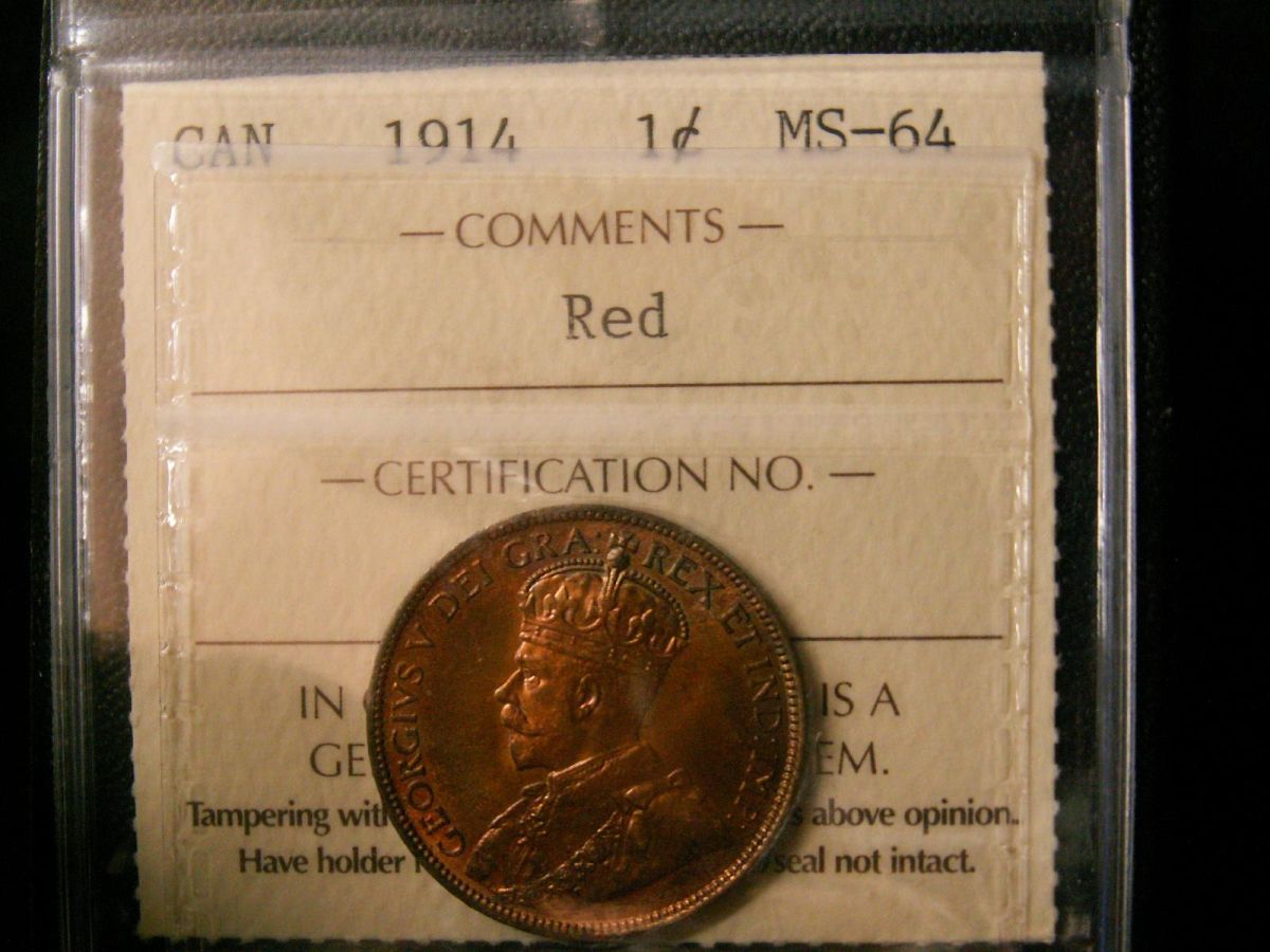 1914 1¢ ICCS MS64RD. 70% red and lustrous.