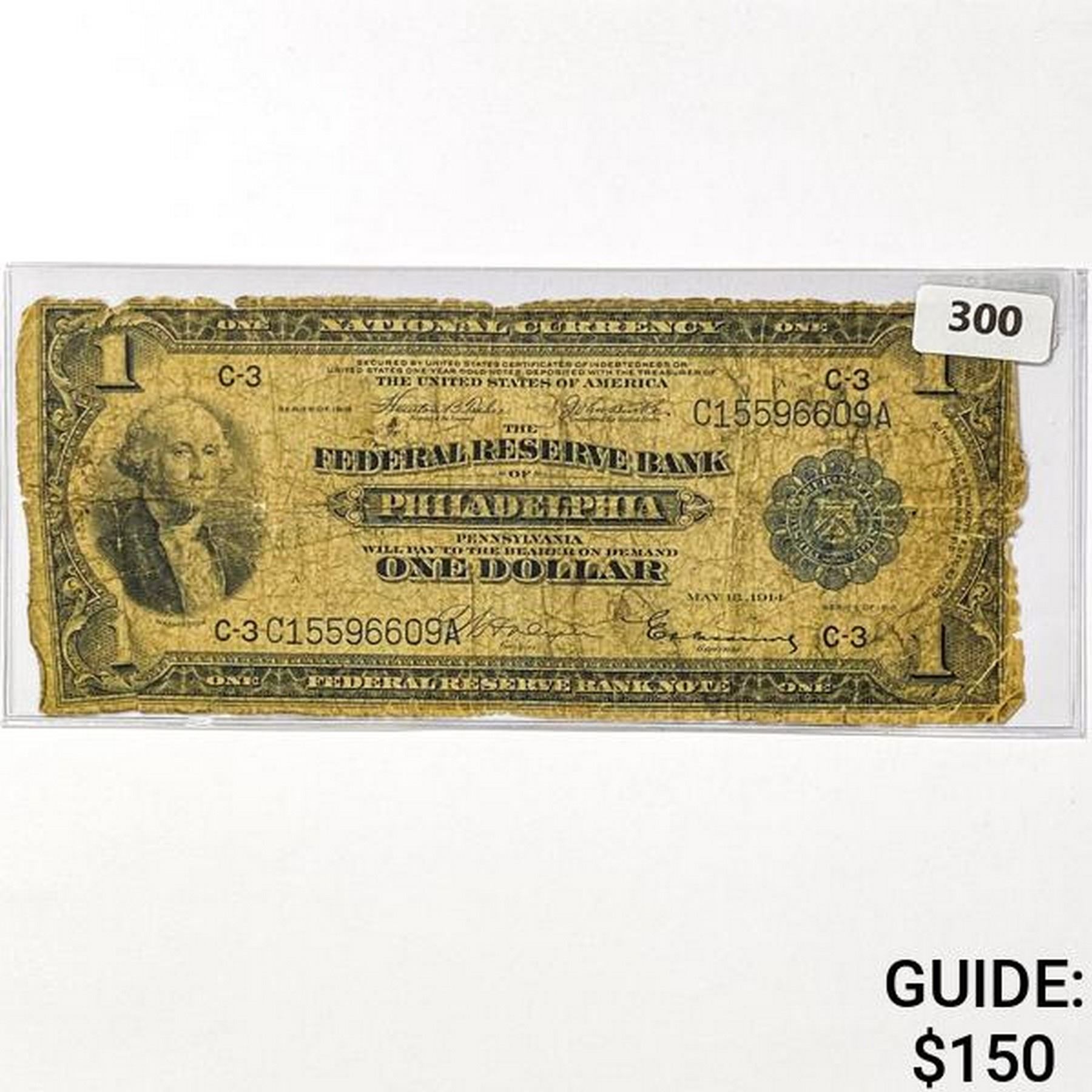 1914 $1 US LG Philadelphia, PA Fed Res Note