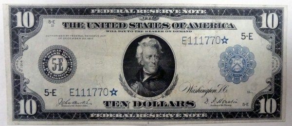 1914 $10.00 FEDERAL RESERVE NOTE STAR NOTE FR.922 RARE! XF-AU, BARGAIN