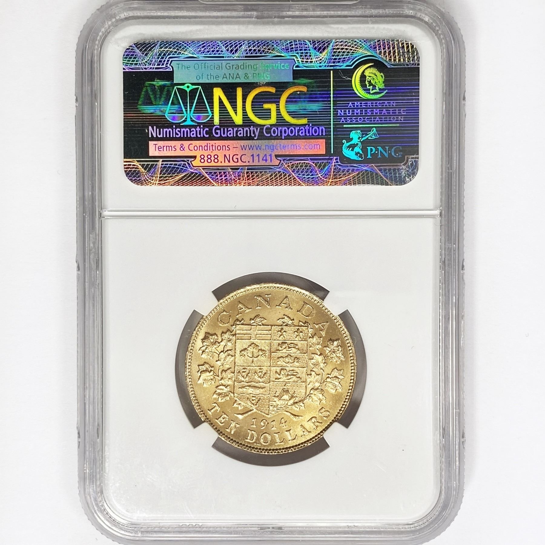 1914 $10 .48oz Canada Gold NGC MS63
