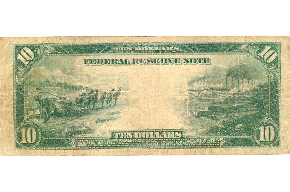 One 1914 $10 Blue Seal Federal Reserve Note.