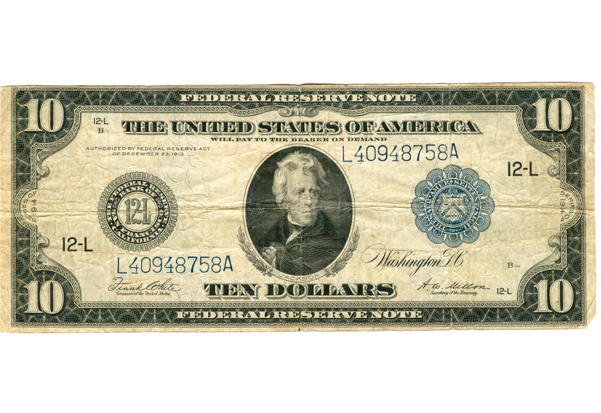 One 1914 $10 Blue Seal Federal Reserve Note.
