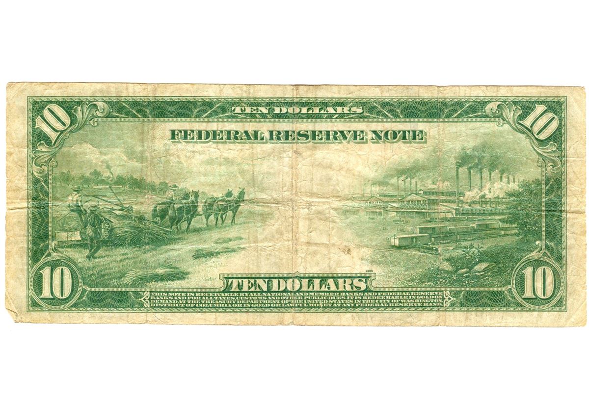 One 1914 $10 Blue Seal Federal Reserve Note.