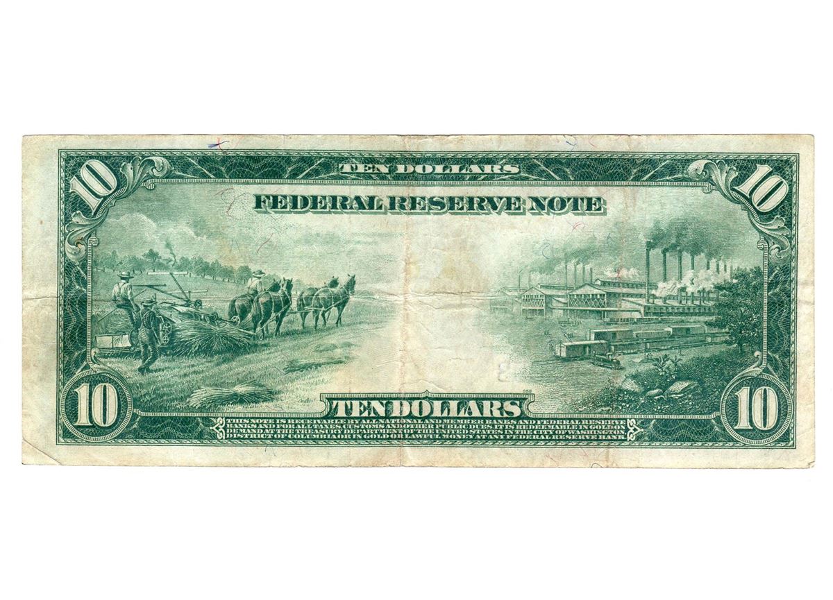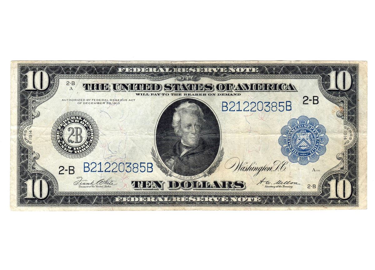 One 1914 $10 Blue Seal Large Federal Reserve Bank Note.