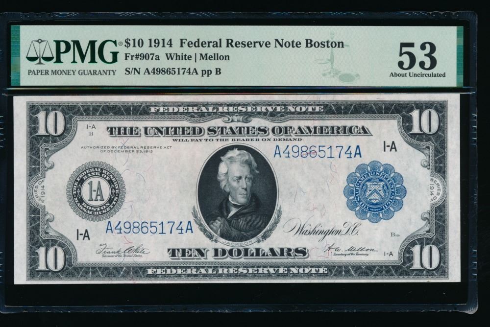 One 1914 $10 Boston FRN PMG 53.