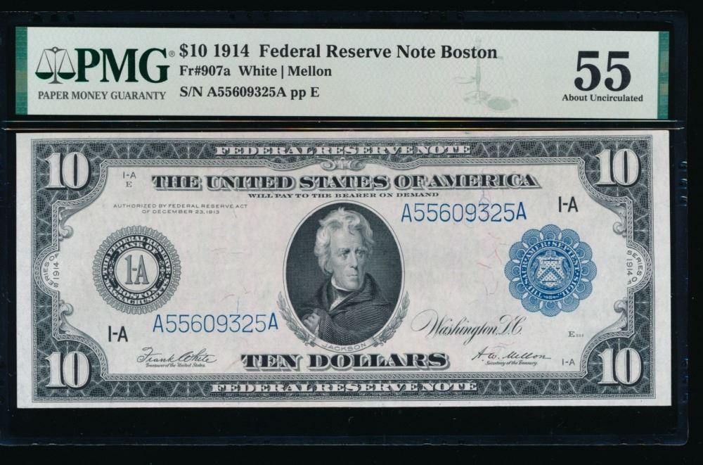 One 1914 $10 Boston Federal Reserve Note PMG 55.