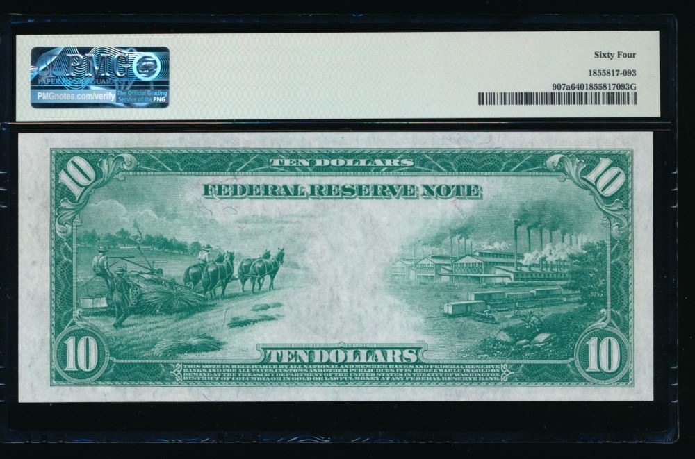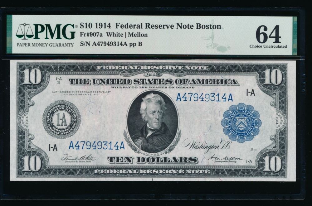 One 1914 $10 Boston Federal Reserve Note PMG 64.