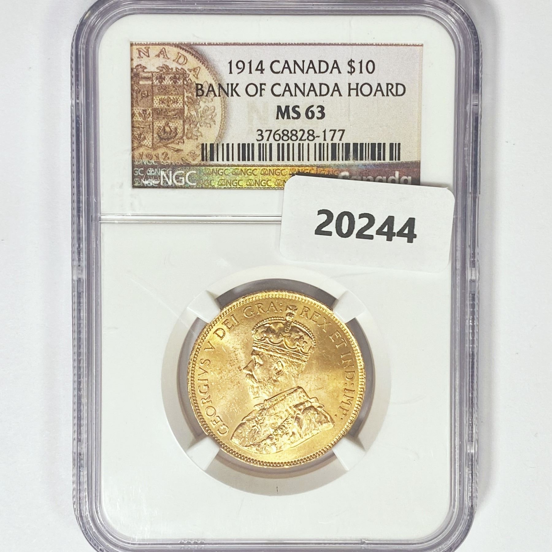 1914 $10 Canada Gold NGC MS63 Bank of Canada Hoar