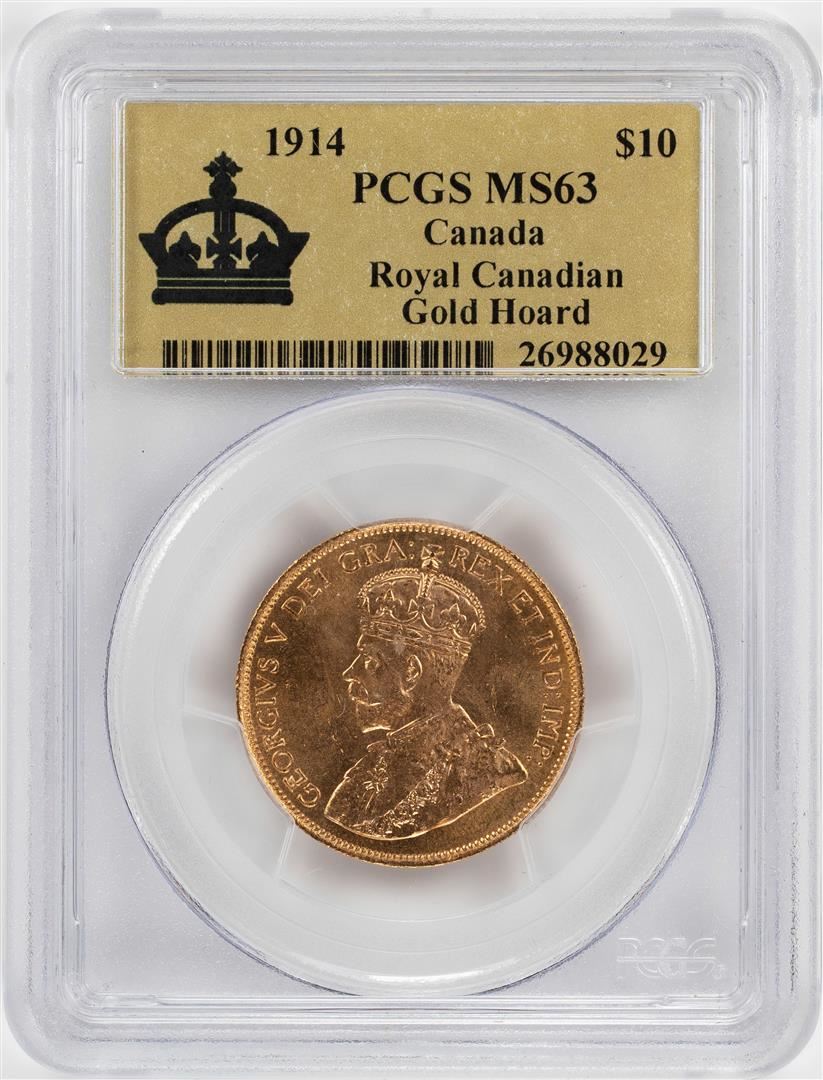 One 1914 $10 Canada Royal Canadian Gold Hoard Coin PCGS MS63. PCGS Graded.