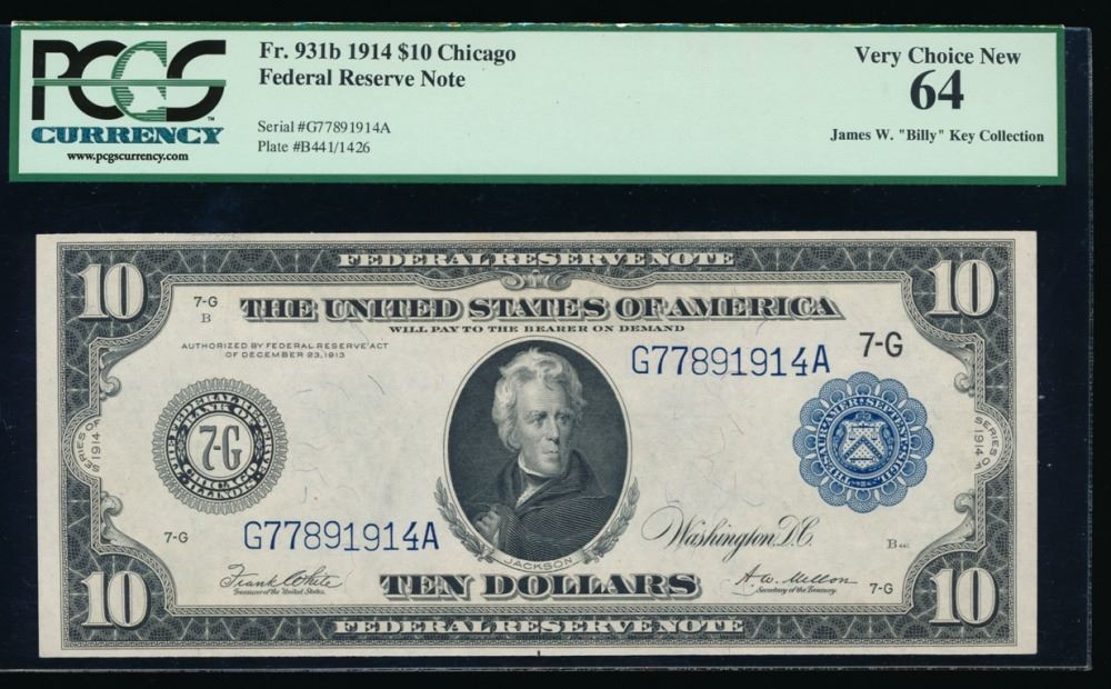 One 1914 $10 Chicago Federal Reserve Note PCGS 64.