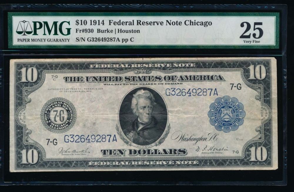 One 1914 $10 Chicago Federal Reserve Note PMG 25.