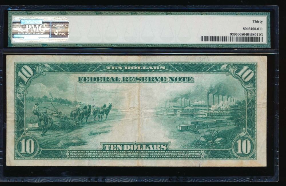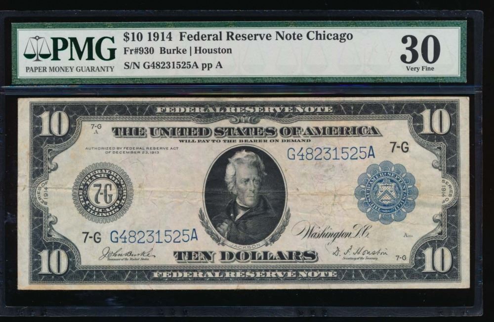 One 1914 $10 Chicago Federal Reserve Note PMG 30.