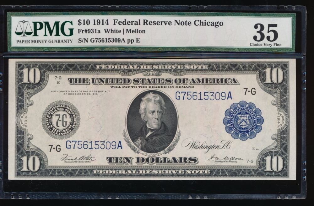 One 1914 $10 Chicago Federal Reserve Note PMG 35.