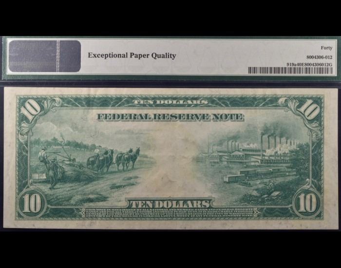 One 1914 $10 Cleveland Federal Reserve Note PMG 40EPQ.