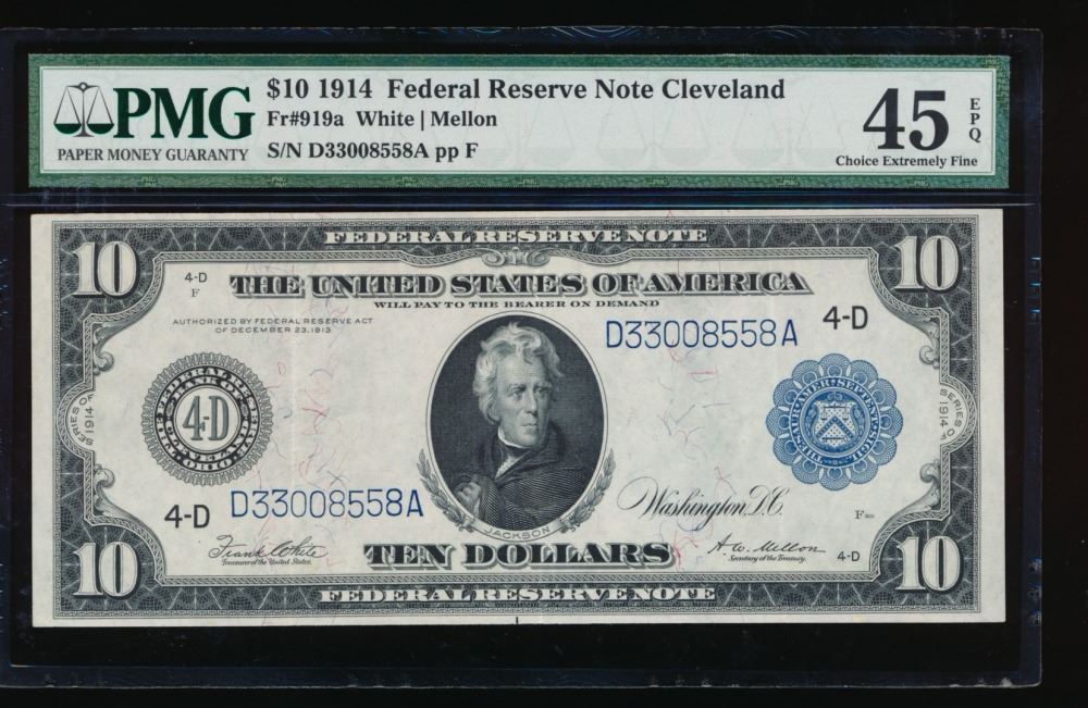 One 1914 $10 Cleveland Federal Reserve Note PMG 45EPQ.