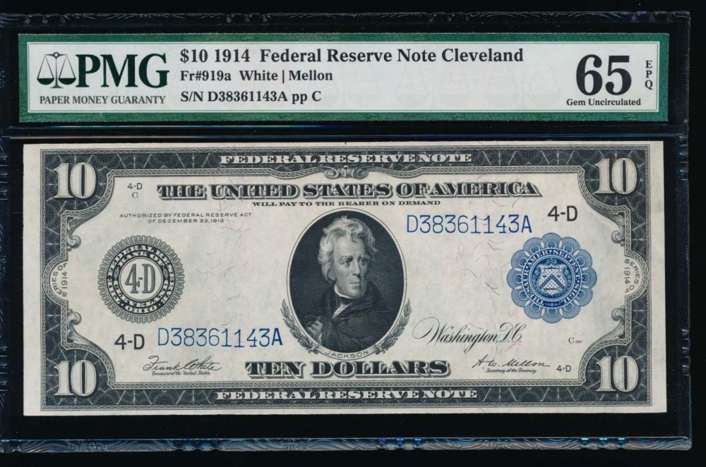 One 1914 $10 Cleveland Federal Reserve Note PMG 65EPQ.