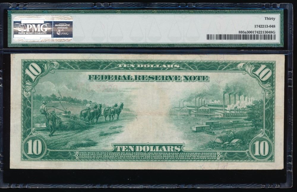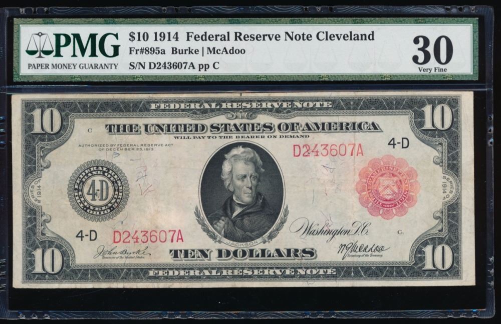 One 1914 $10 Cleveland Red Seal Federal Reserve Note PMG 30.