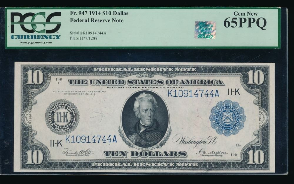 One 1914 $10 Dallas FRN PCGS 65PPQ.