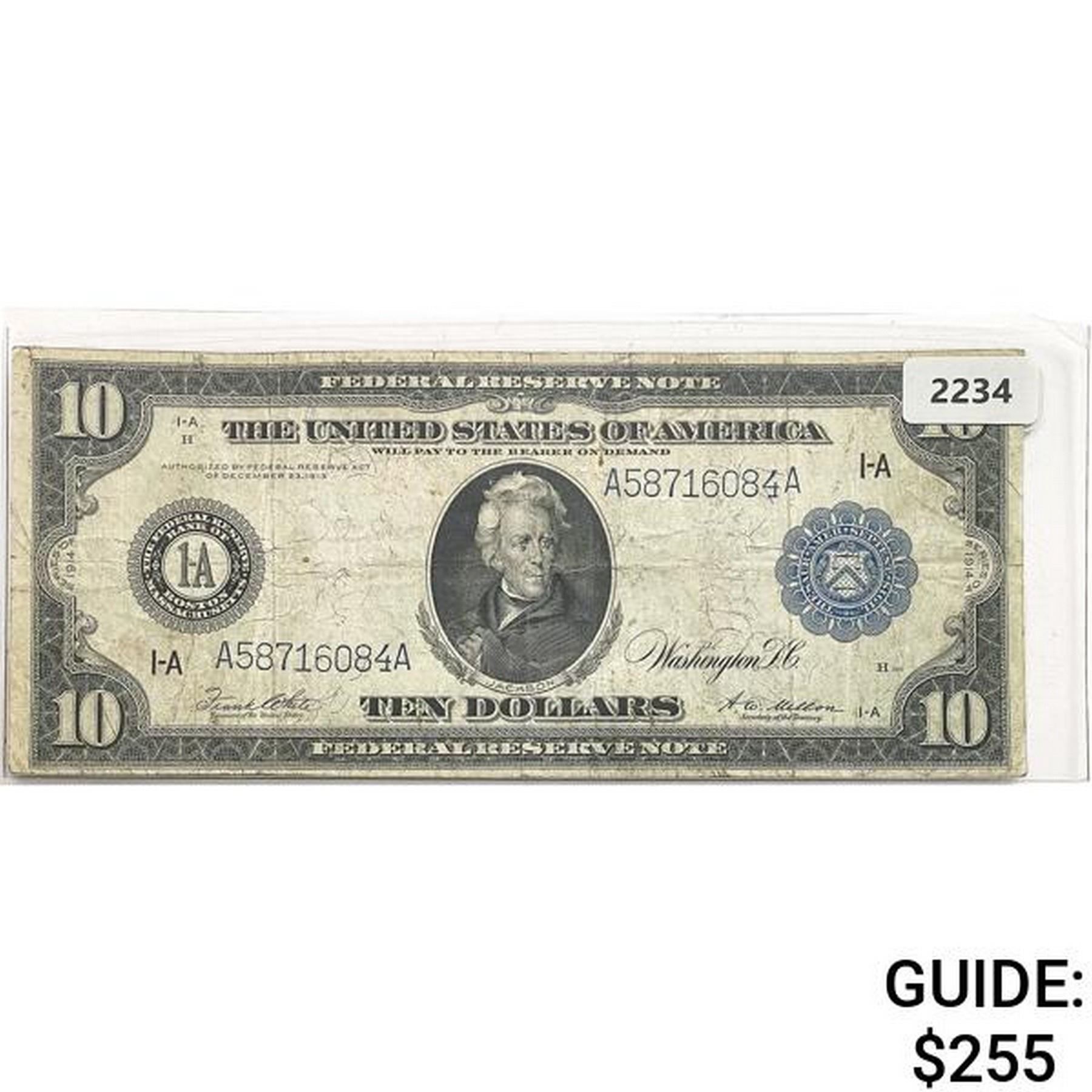1914 $10 Federal Reserve Large Note-Bank of Boston