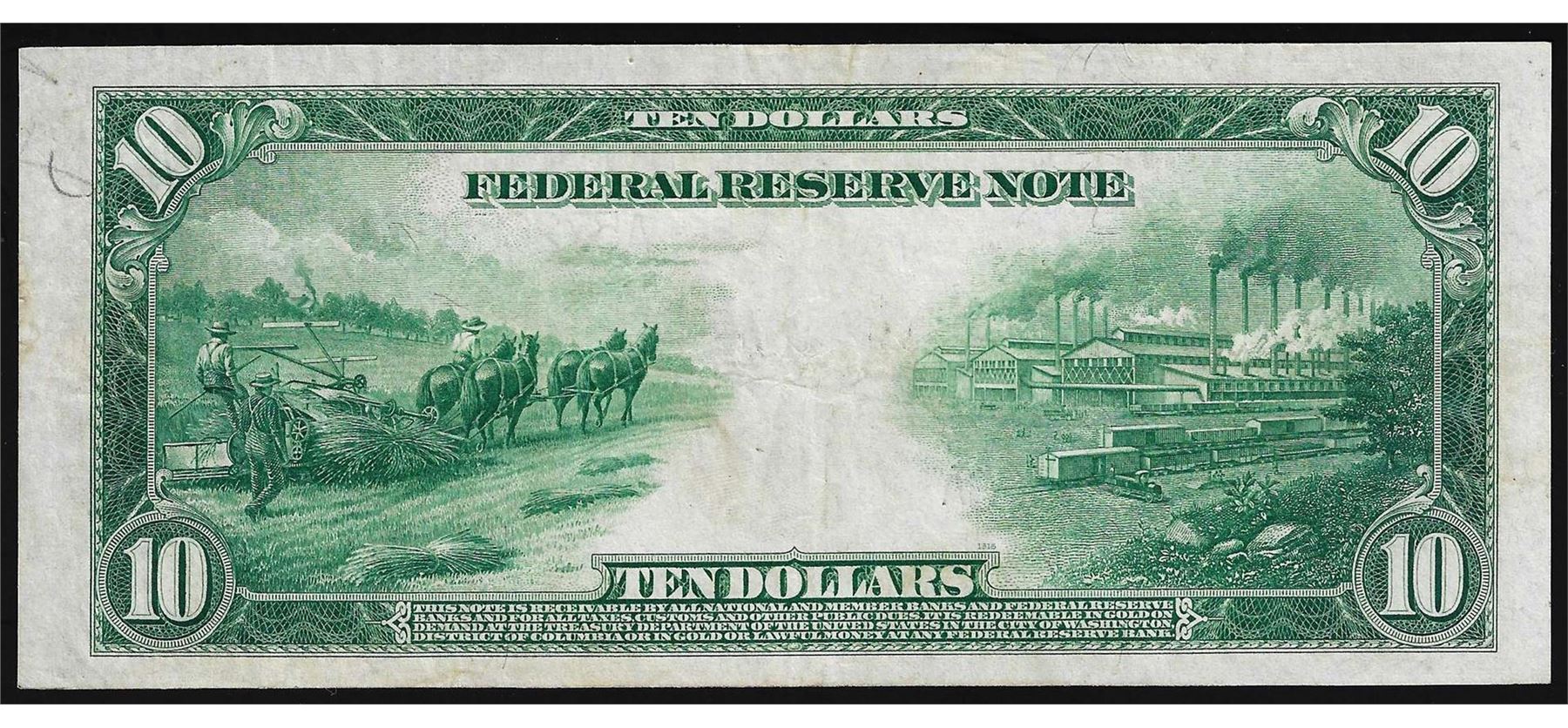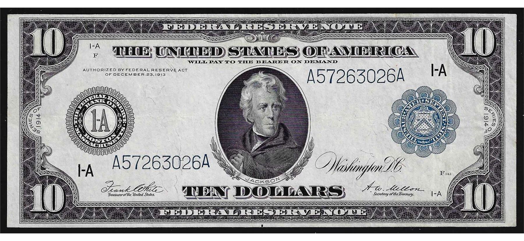 One 1914 $10 Federal Reserve Note Blue Seal Boston.