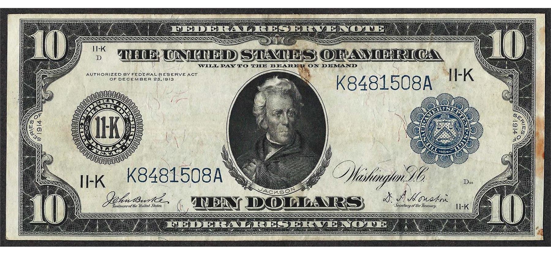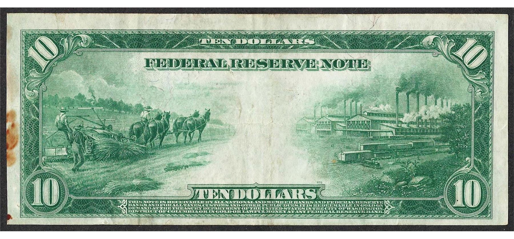 One 1914 $10 Federal Reserve Note Dallas.