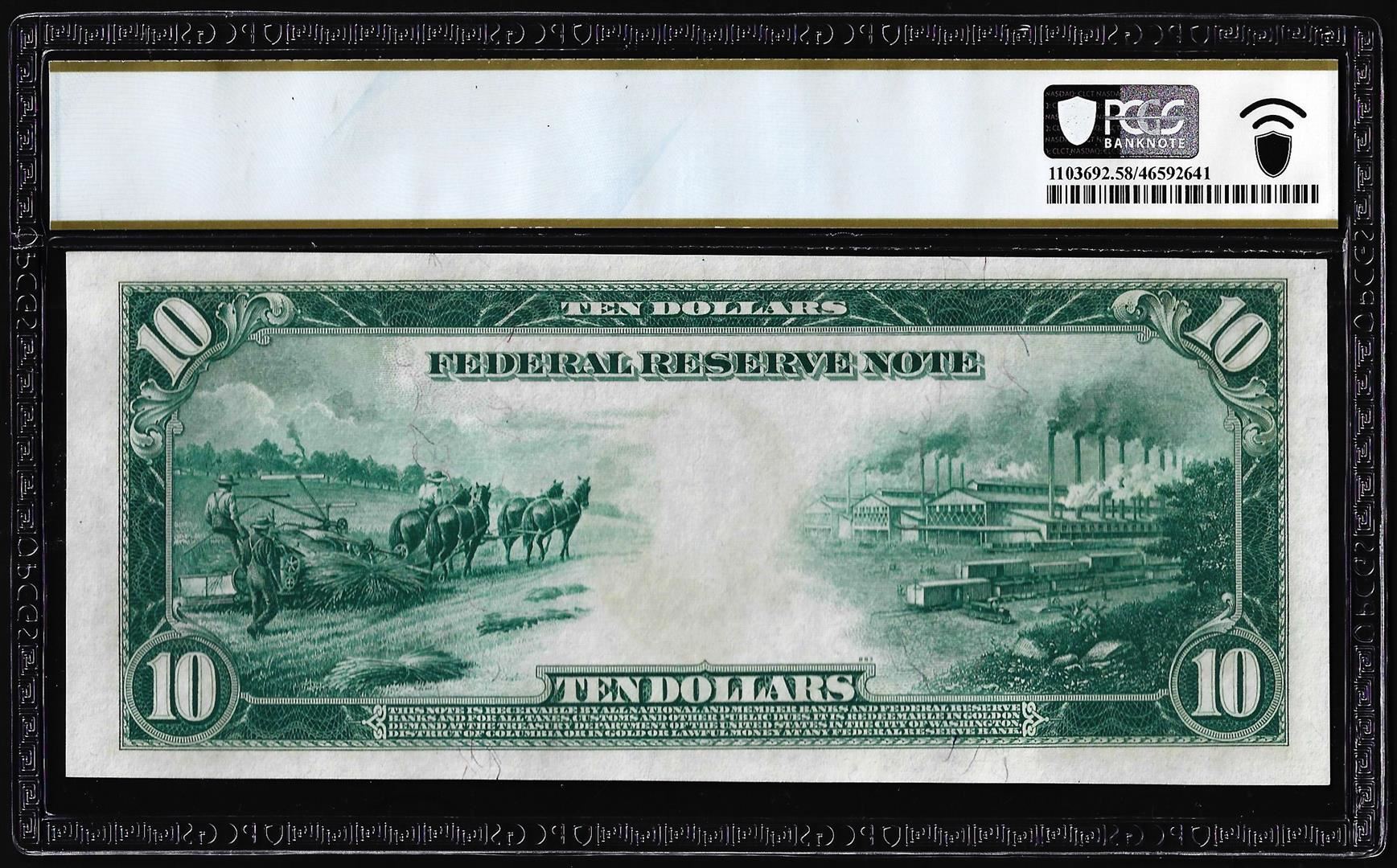 1914 $10 Federal Reserve Note New York Fr.911A PCGS Choice About Uncirculated 58