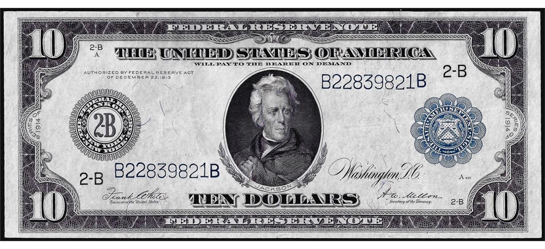 One 1914 $10 Federal Reserve Note New York.