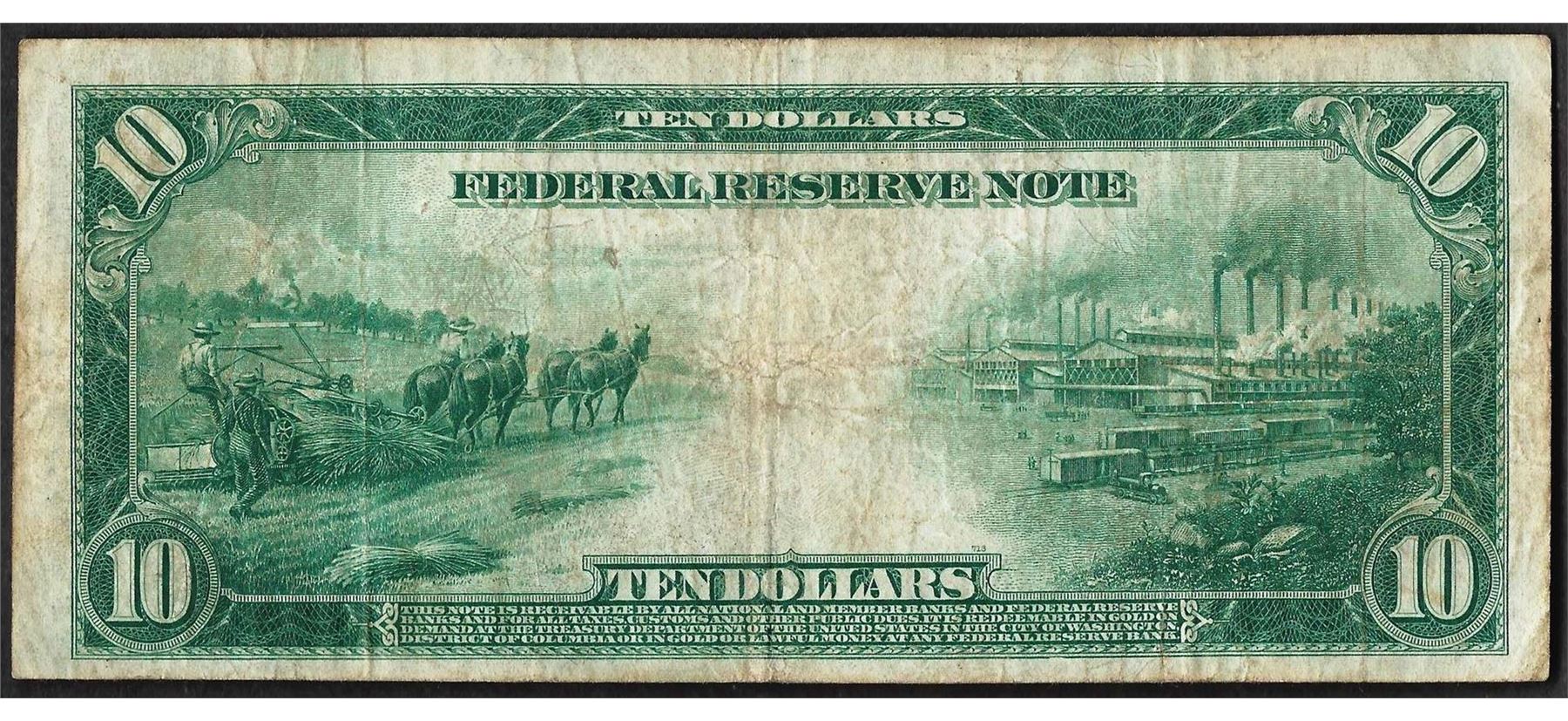One 1914 $10 Federal Reserve Note Philadelphia.