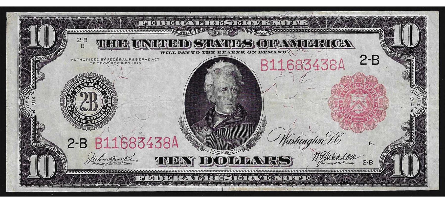 One 1914 $10 Federal Reserve Note Red Seal.