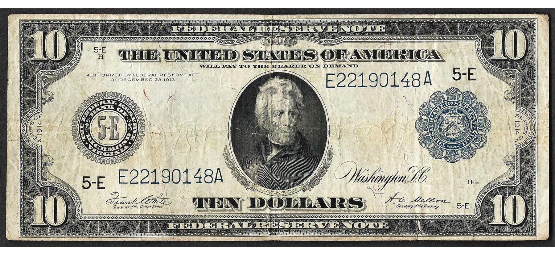 One 1914 $10 Federal Reserve Note Richmond.