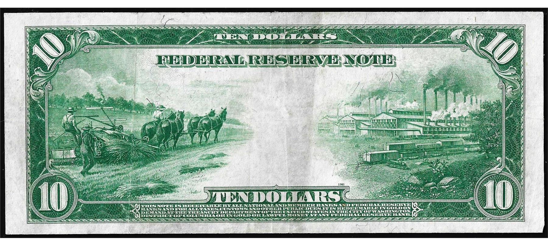One 1914 $10 Federal Reserve Note San Francisco.