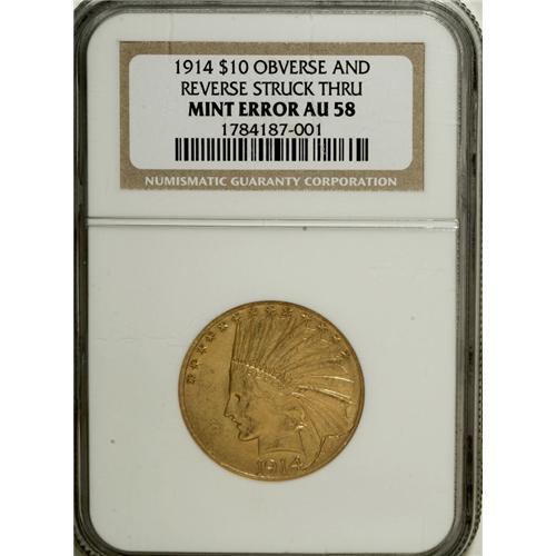 1914 $10 Indian Eagle--Obverse and Reverse Struck Thro