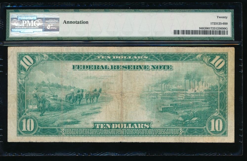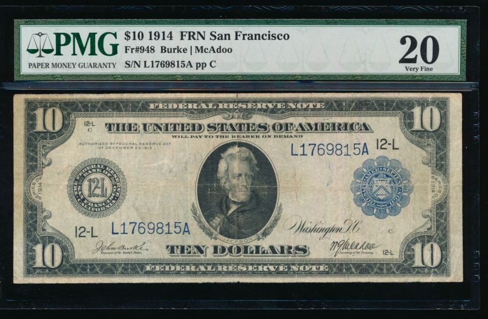 One 1914 $10 Large San Francisco Federal Reserve Note PMG 20.