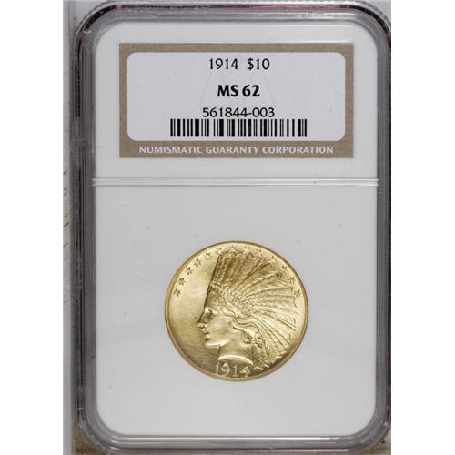 1914 $10 MS62 NGC. The lemon-yellow fields of this eag
