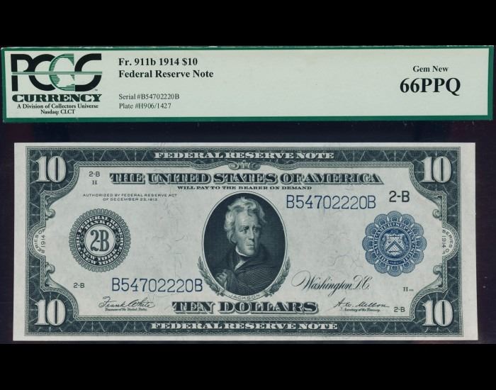 One 1914 $10 New York Federal Reserve Note PCGS 66EPQ.