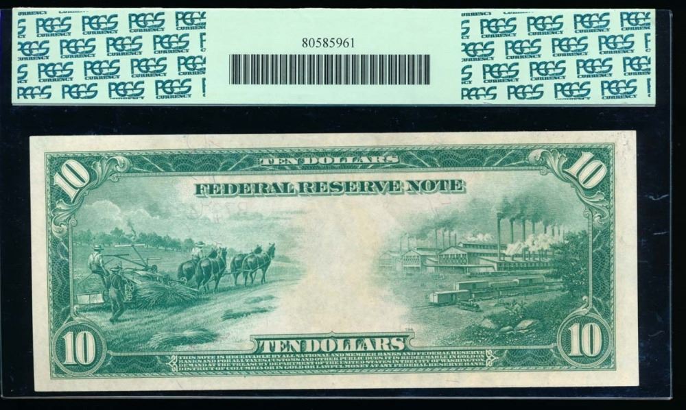 One 1914 $10 New York Federal Reserve Note PCGS 66PPQ.