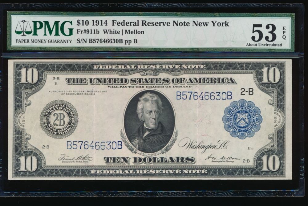 One 1914 $10 New York Federal Reserve Note PMG 53EPQ.