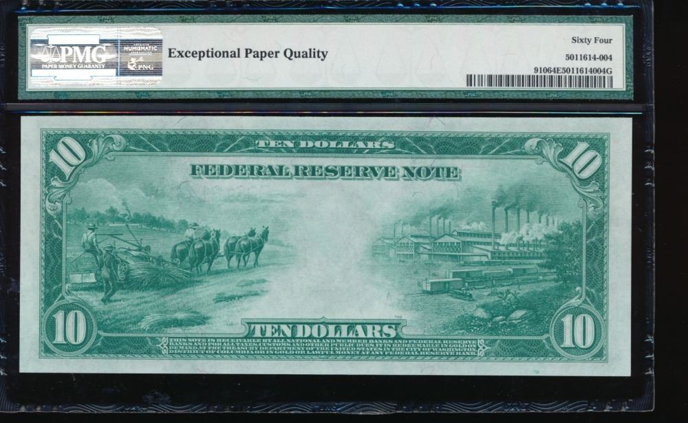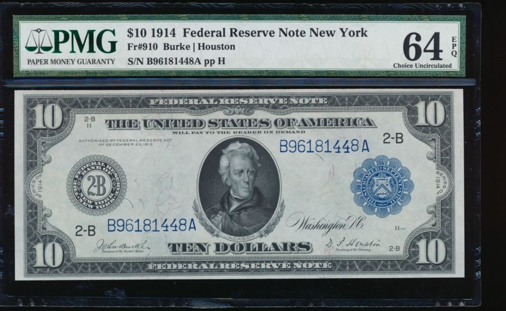 One 1914 $10 New York Federal Reserve Note PMG 64EPQ.