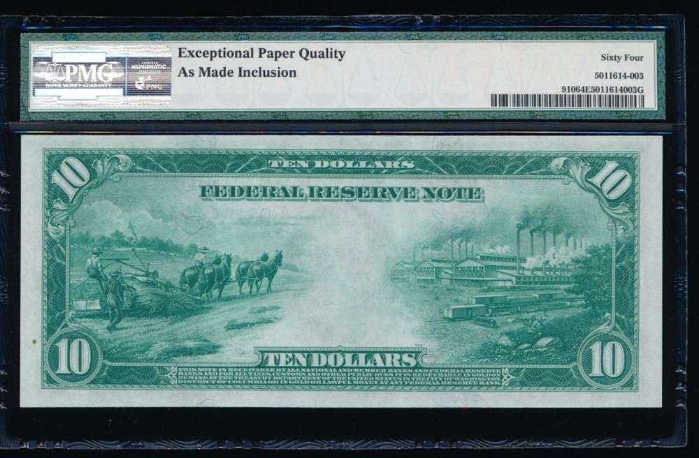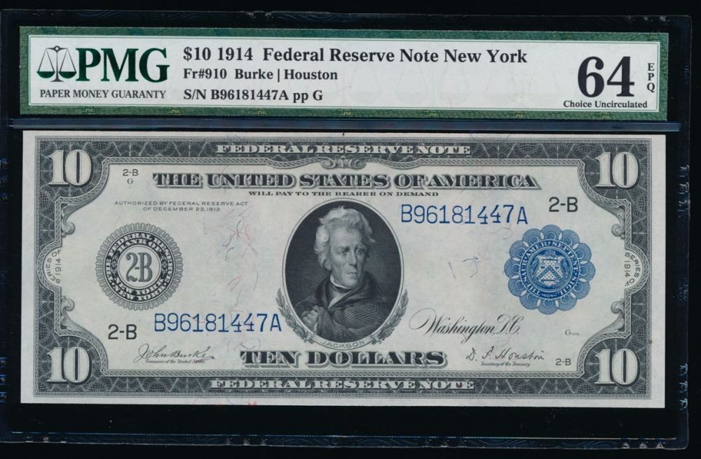 One 1914 $10 New York Federal Reserve Note PMG 64.