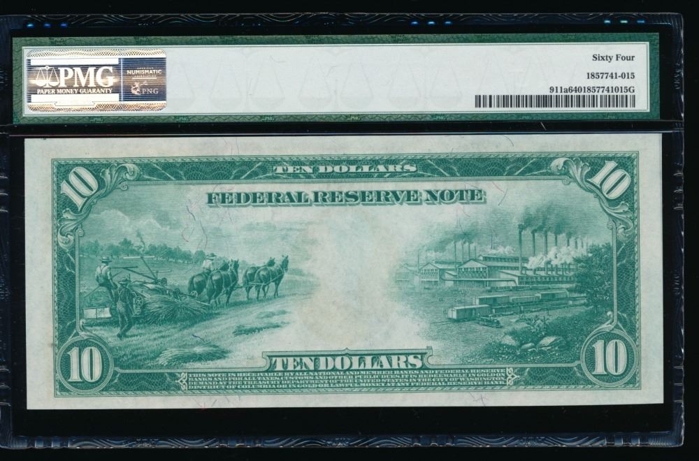 One 1914 $10 New York Federal Reserve Note PMG 64.
