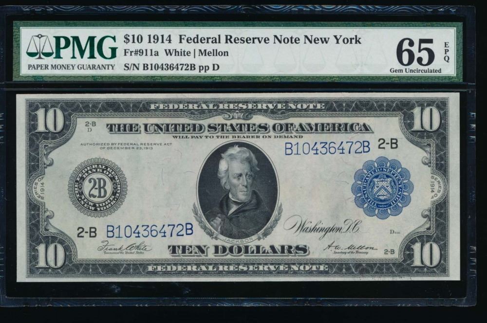 One 1914 $10 New York Federal Reserve Note PMG 65EPQ.