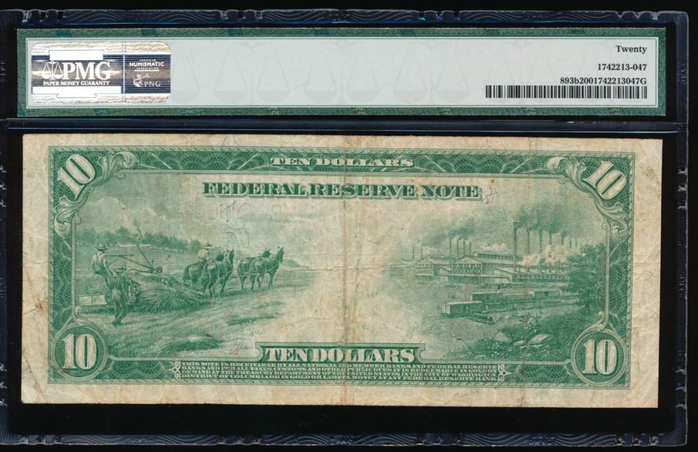 One 1914 $10 New York Red Seal Federal Reserve Note PMG 20.