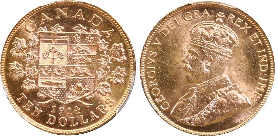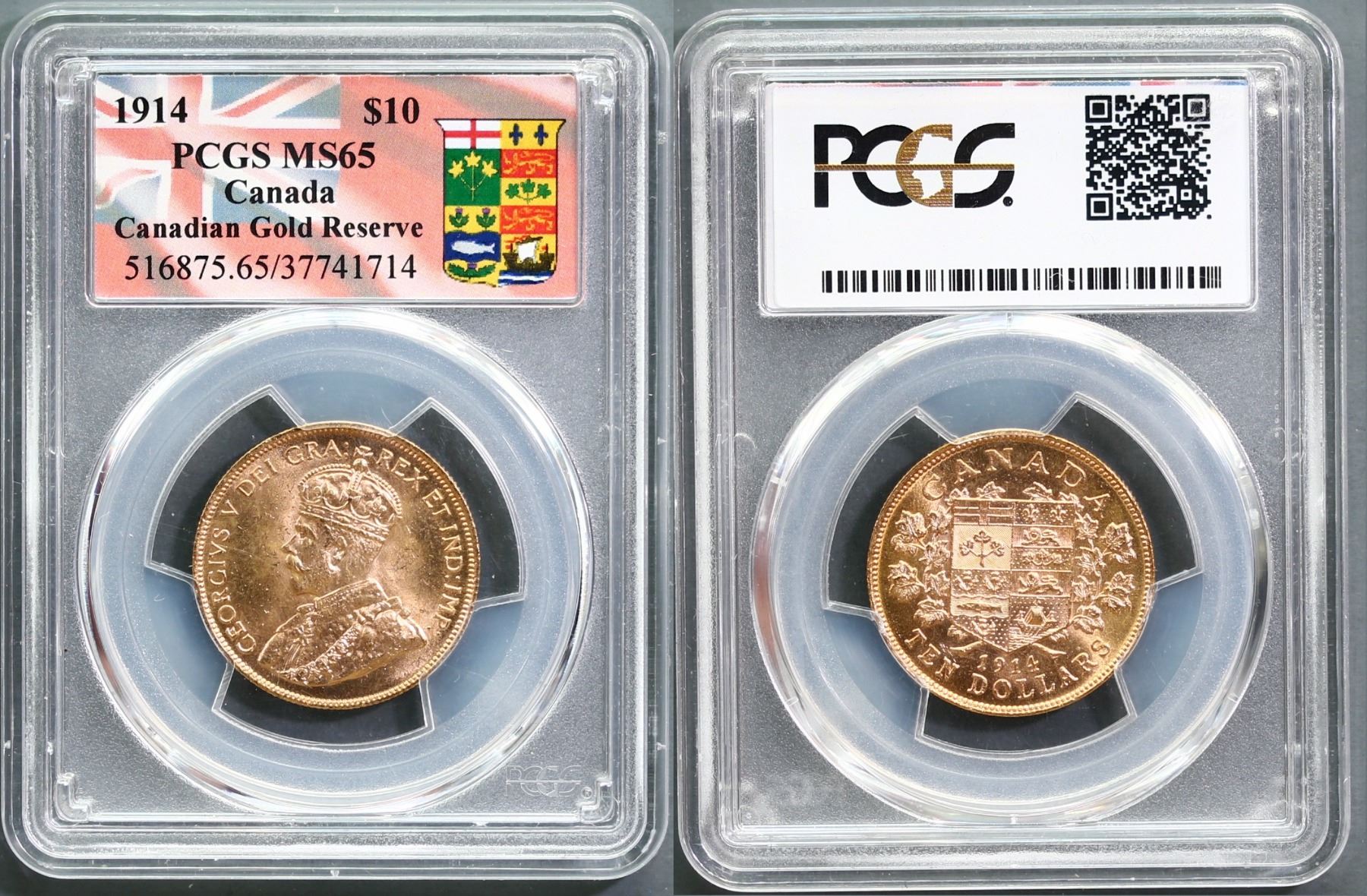 1914 $10 PCGS Gem Mint State-65 (sell in us auctions at approx 4-5k cad