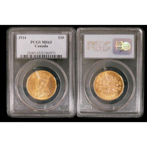 1914 $10 PCGS MS63, fully lustrous and and bright piece