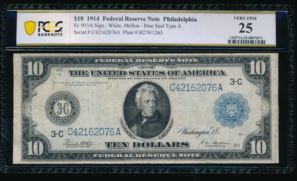 One 1914 $10 Philadelphia FRN PCGS 25.