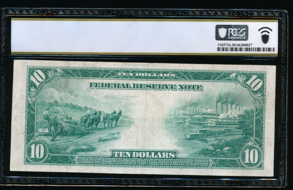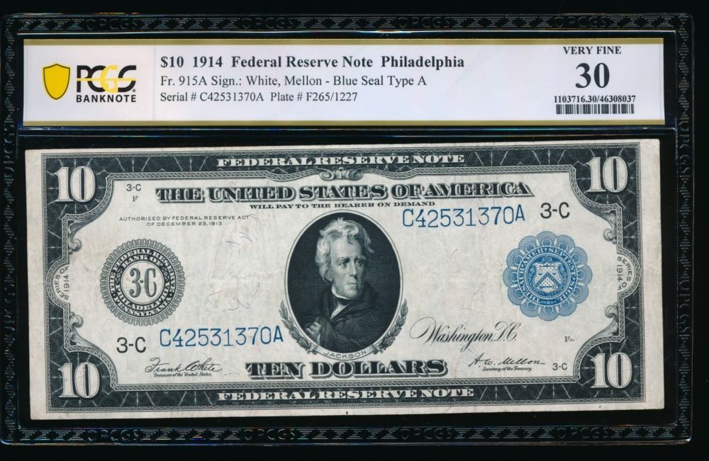 One 1914 $10 Philadelphia FRN PCGS 30.