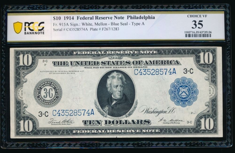 One 1914 $10 Philadelphia FRN PCGS 35.