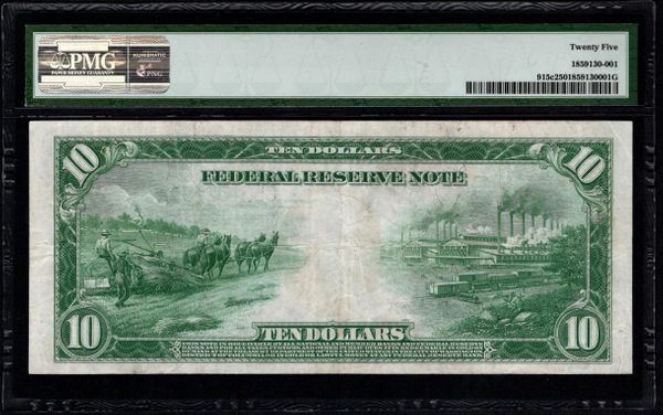 One 1914 $10 Philadelphia Federal Reserve Note PMG 25.